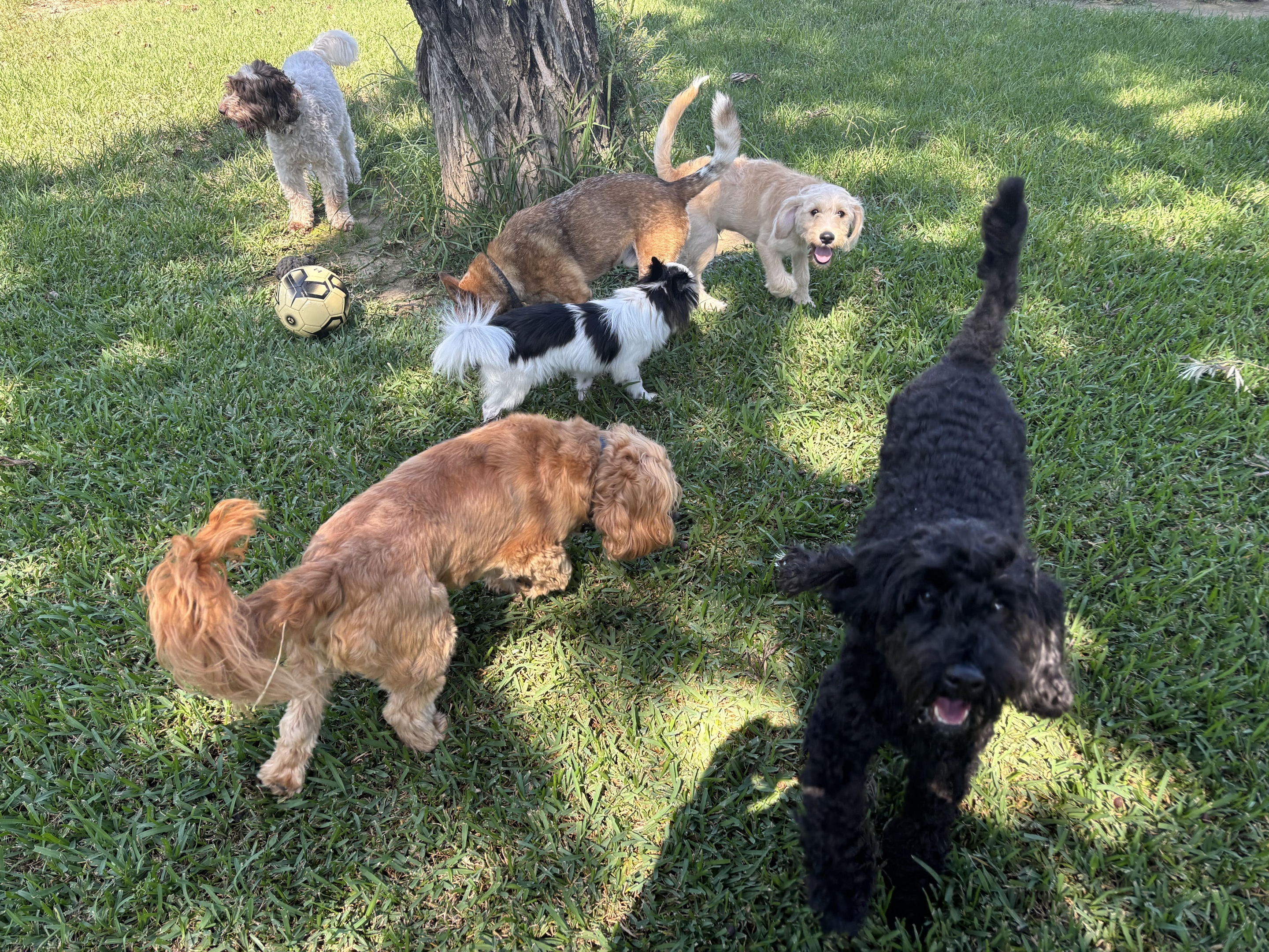 Drop me off between 8-930am with all of my pals who attend with me each week. I like that I get to see familiar faces and remember the fun I had with them last week! While I'm here, I get to practice how to socialise with other pooches and read their cues if they aren't keen to play like I am. I get to run as fast as I can, chasing the ball or tumbling around with other energetic poochies and benefit from daily exercise if Mum or Dad are working hard and won't get to walk me in the afternoon. I also get lots of pats and cuddles from the gang while I'm here! Pick me up between 3-5pm and I'll be tuckered out ready for dinner and bed.