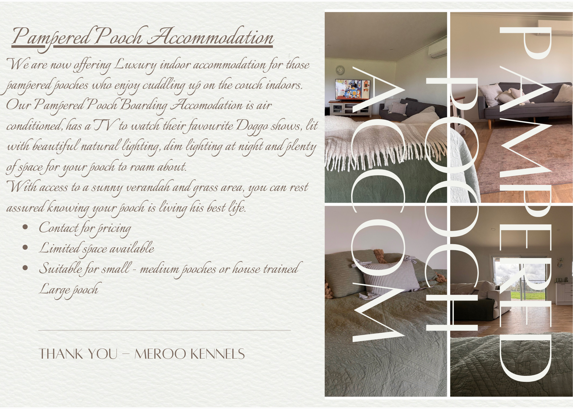 * We do not accommodate aggressive dogs