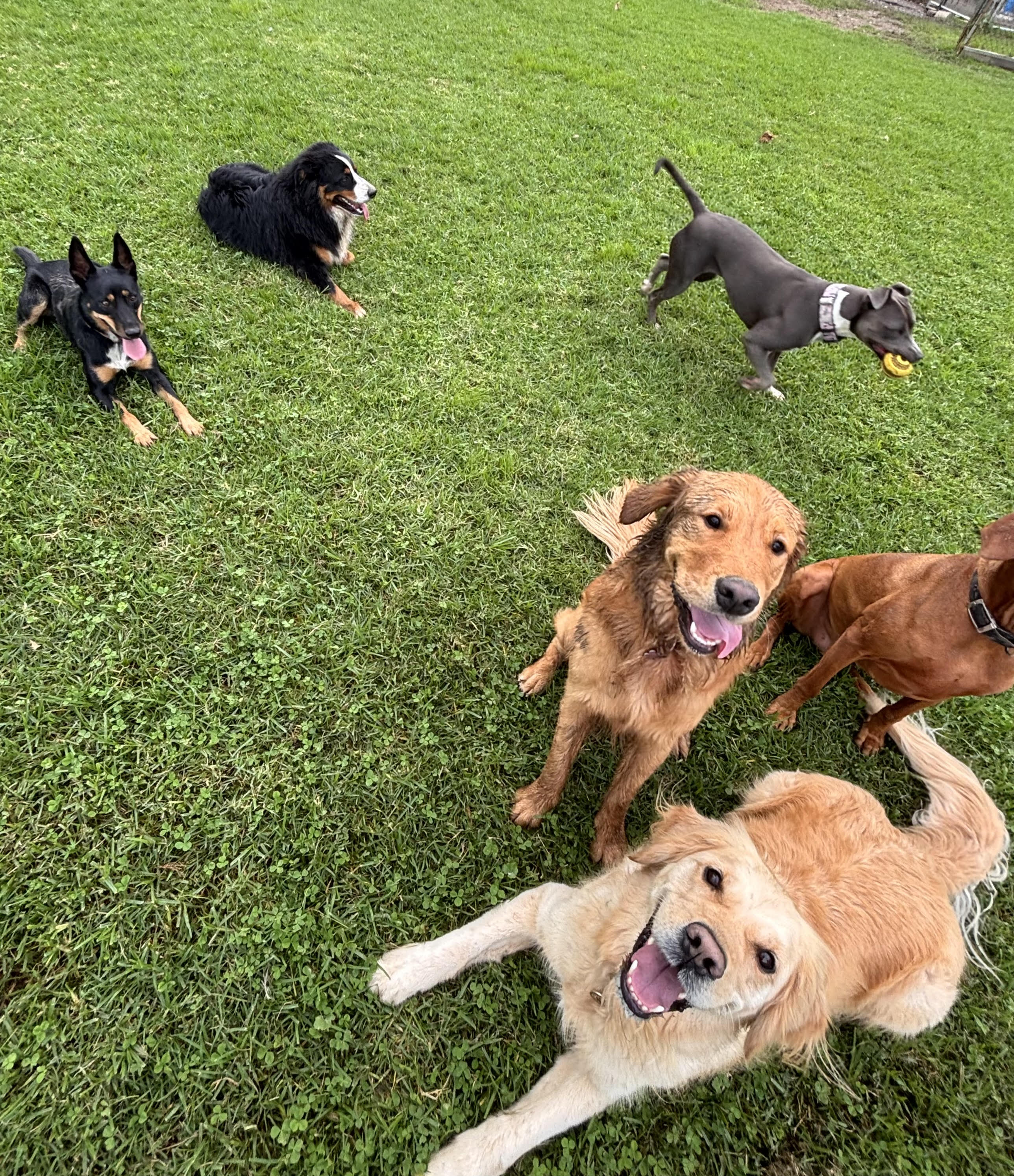Drop me off between 8-930am with all of my pals who attend with me each week. I like that I get to see familiar faces and remember the fun I had with them last week! While I'm here, I get to practice how to socialise with other pooches and read their cues if they aren't keen to play like I am. I get to run as fast as I can, chasing the ball or tumbling around with other energetic poochies and benefit from daily exercise if Mum or Dad are working hard and won't get to walk me in the afternoon. I also get lots of pats and cuddles from the gang while I'm here! Pick me up between 3-5pm and I'll be tuckered out ready for dinner and bed.